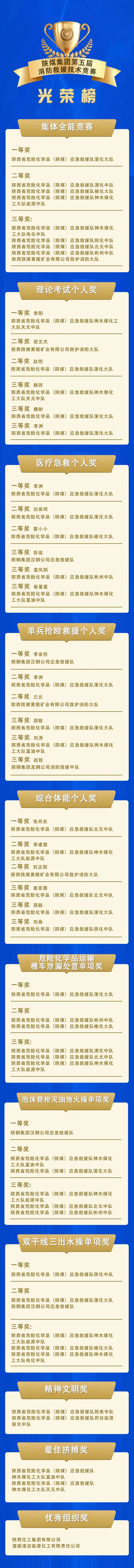 競賽共產(chǎn)生27個集體獎,24個個人獎,6個精神文明獎、最佳拼搏獎、優(yōu)秀組織獎,以及5個優(yōu)秀指揮員、25個中省級優(yōu)秀裁判員、優(yōu)秀裁判員。渭南市消防救援支隊、陜煤集團、陜西化工集團等相關(guān)領導出席閉幕式并頒獎。